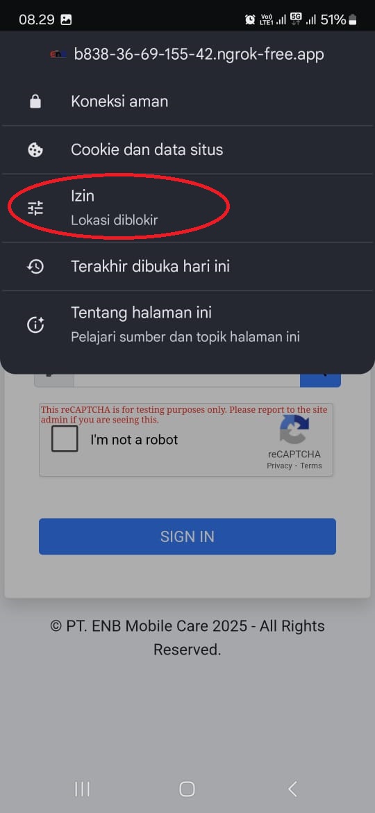 On some devices a menu like this will appear. Ignore this menu by clicking somewhere other than the menu area, or click somewhere that has been circled. Then refresh your browser and allow location permission.
