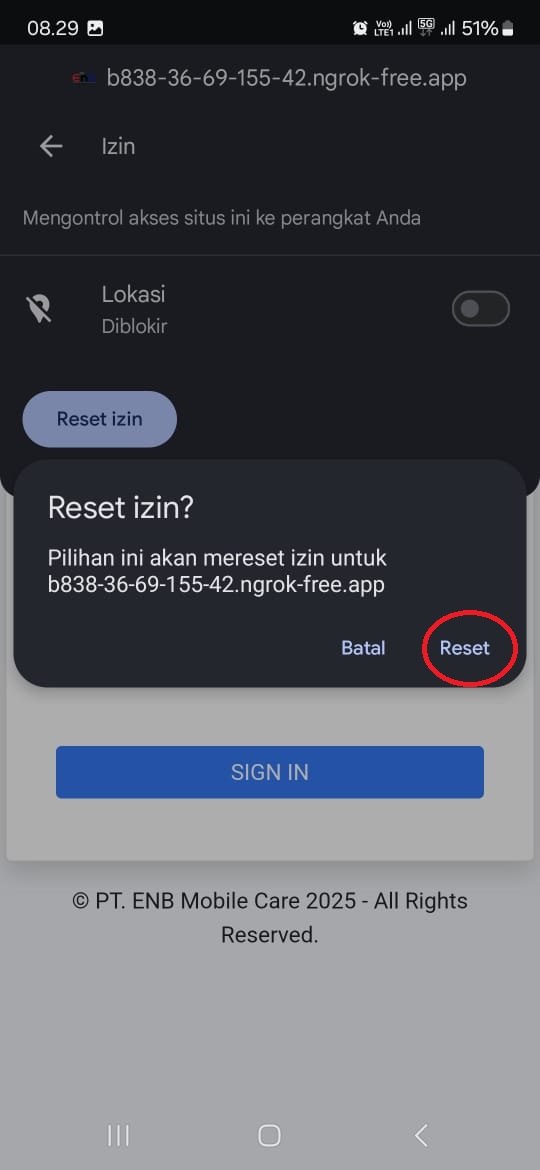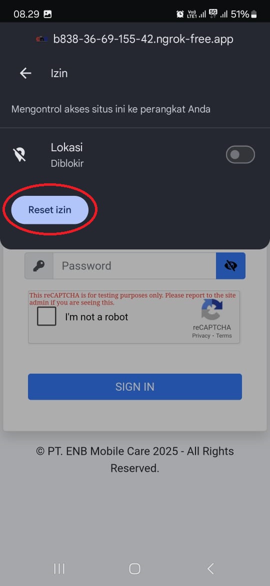 Will enter the location page. On the page there is a reset permission button (circled in red) then click the button to reset the location permission.